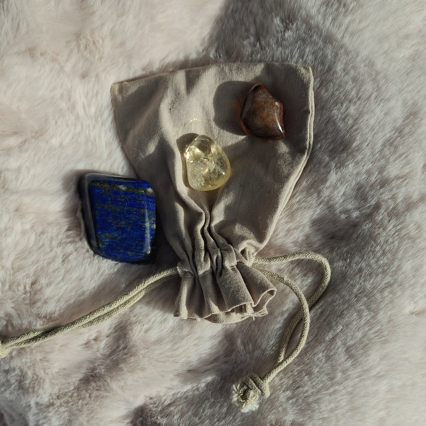 - 1 x Taikaa-pussi: Luovuus - Sisältää 1 x Lapis Lazuli, 1 x Karneoli & 1 x Sitriini
